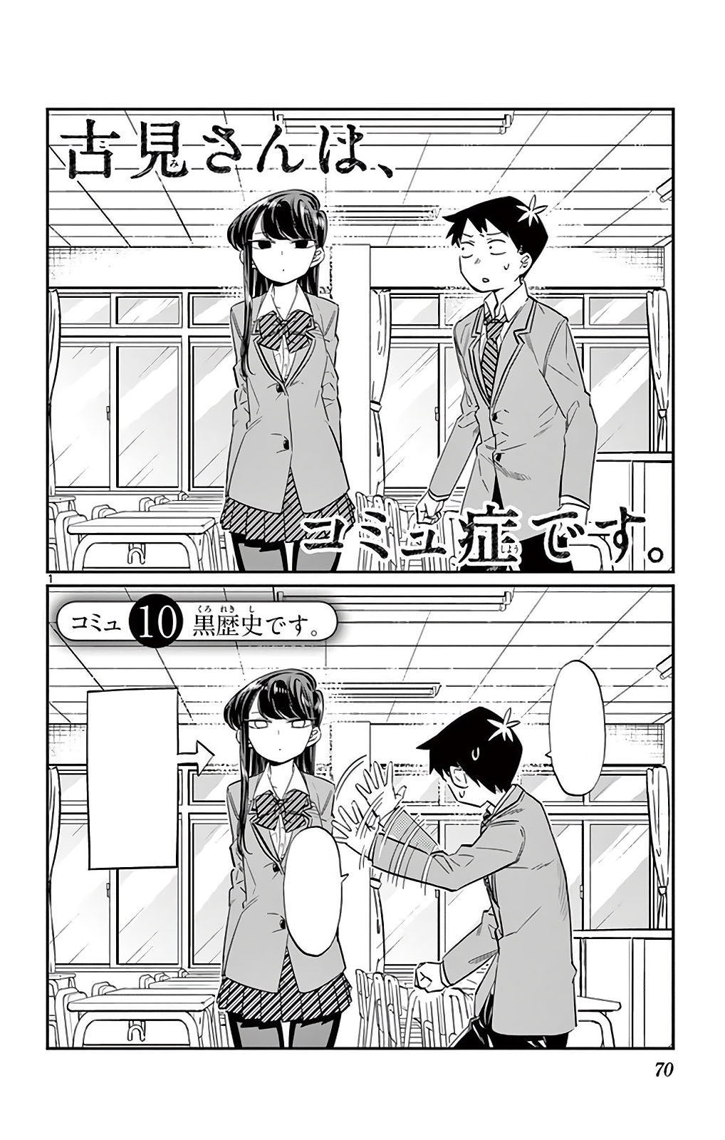After Komi Shouko is left petrified by Osana Najimi's rejection, Tadano Hitohito pulls Najimi into the hallway to talk in private and demands an explanation. Najimi explains that they met Komi in their second year of elementary school, however despite Najimi's efforts, Komi never said a word back, which shocked Najimi to the point of being bedridden for a week. Najimi continues on to say that Komi's presence still made them tremble, but Tadano tells them that they are wrong about Komi and encourages them to give her a chance.