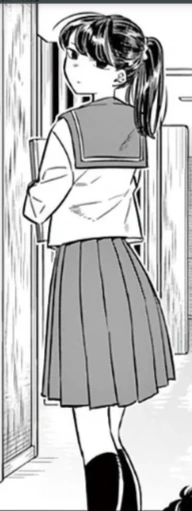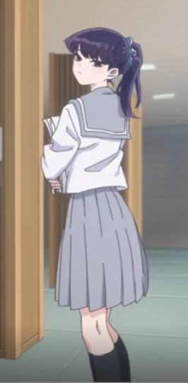 Shouko is described by her admirers as a girl with glossy dark purple/black hair that flows to her lower back, a slender body, and an incredibly beautiful face. She is usually seen wearing her school uniform with full length tights, her jacket fully buttoned up, and her skirt above her knees. Komi is considered to be the most beautiful person at Itan, which constantly attracts attention from other students, and even strangers.